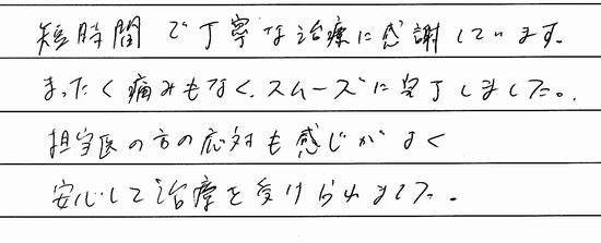 短時間で丁寧な治療に感謝しています。